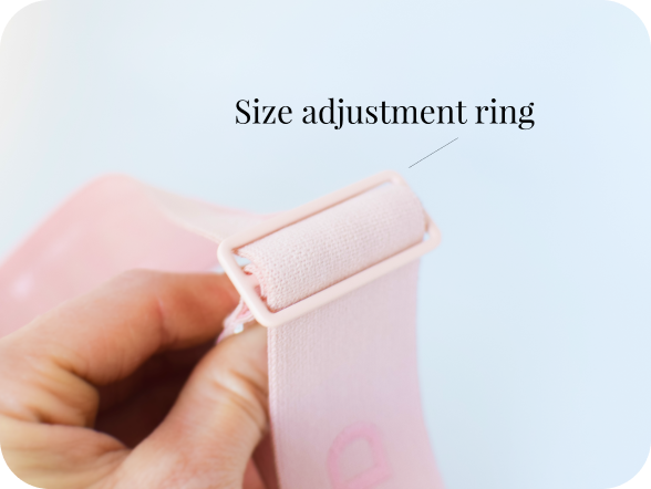1. To adjustment the size, simply pinch the elastic seam located on the opposite side of the sizing ring.