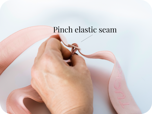With the seam firmly pinched, slide the elastic with the other hand to adjust the length